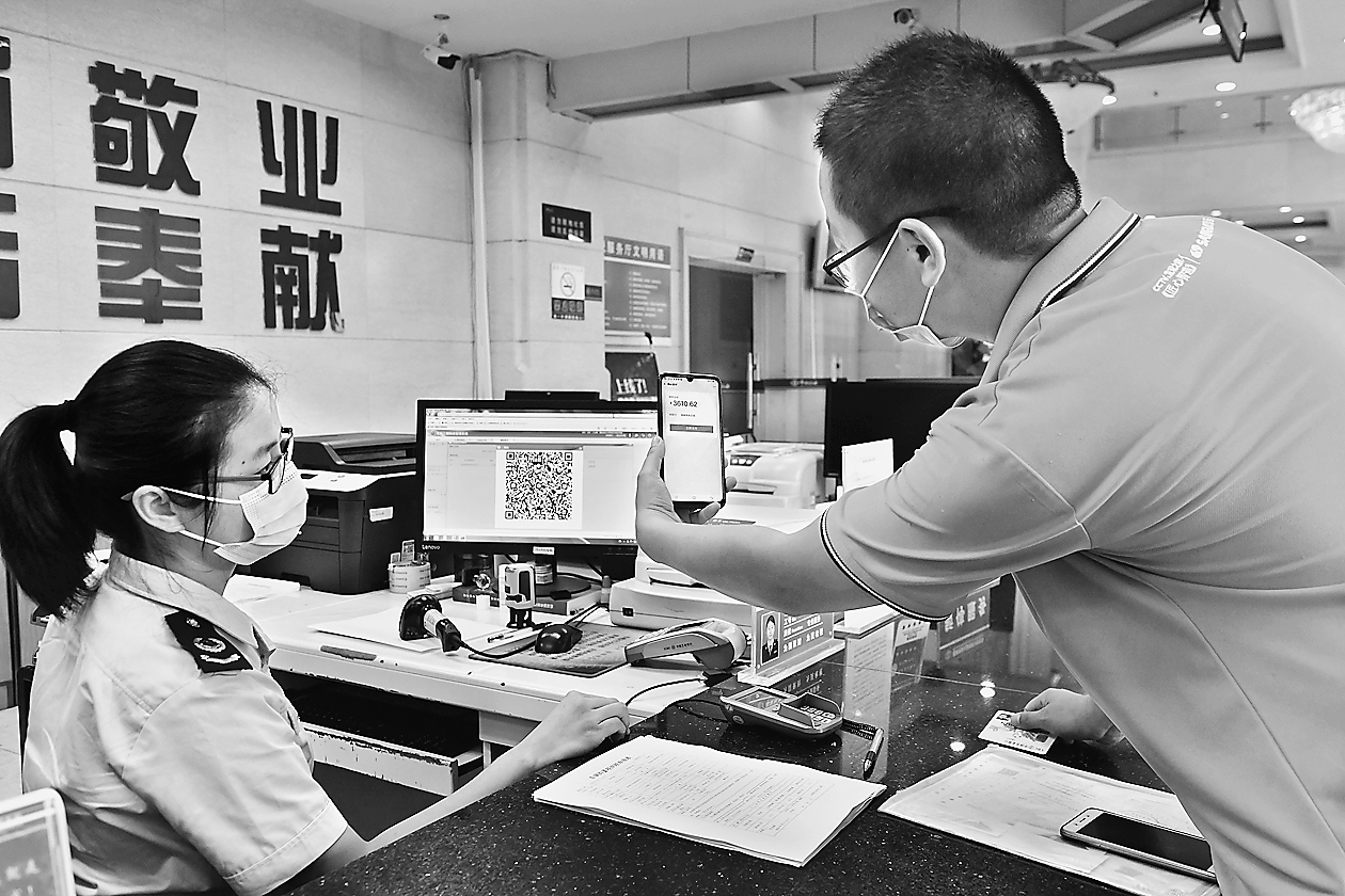 最近,国家税务总局枣阳市税务局在办税服务厅推出二维码缴纳税费服务,为纳税人、缴费人带来了便利。图为纳税人扫描二维码缴纳税费。