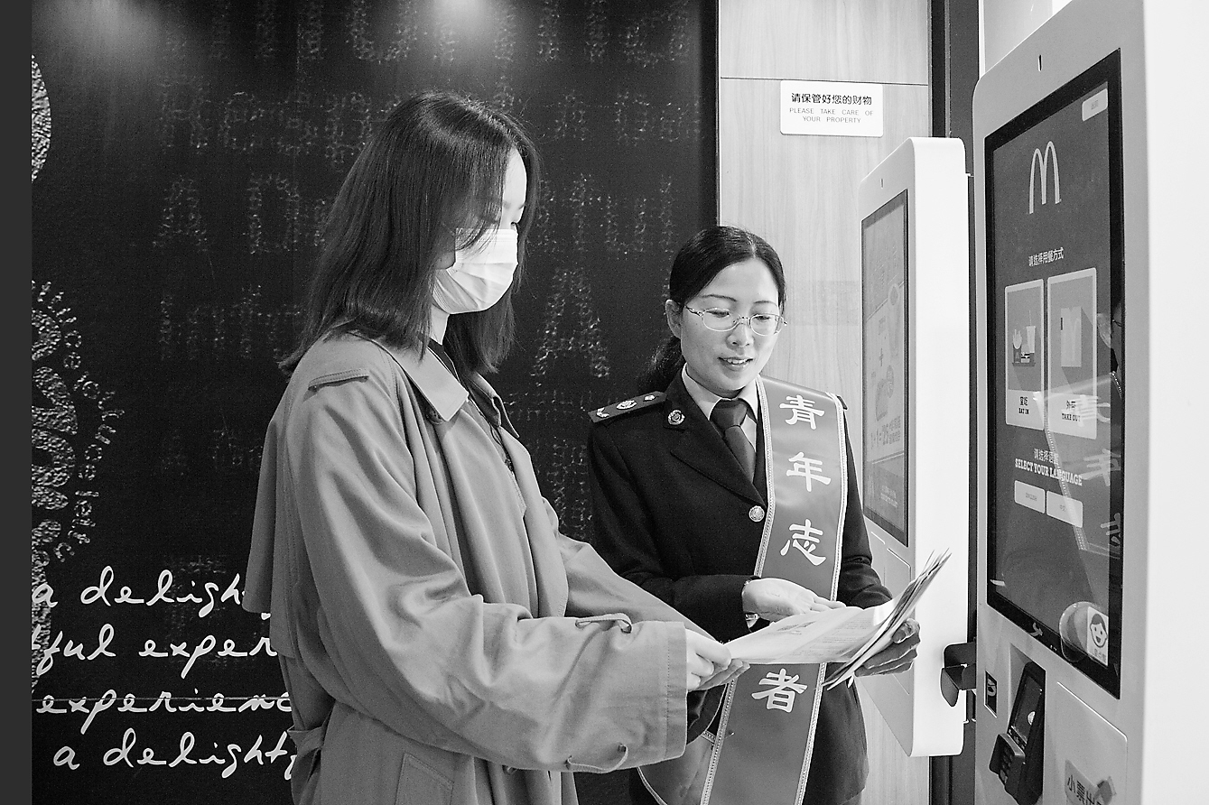 国家税务总局南京市玄武区税务局近期将落实税费优惠政策与关注残疾人事业相结合,走进企业宣传残疾人就业保障金征缴办法和申报流程。图为该局税收宣传志愿人员向南京金拱门食品有限公司财务人员宣传政策。