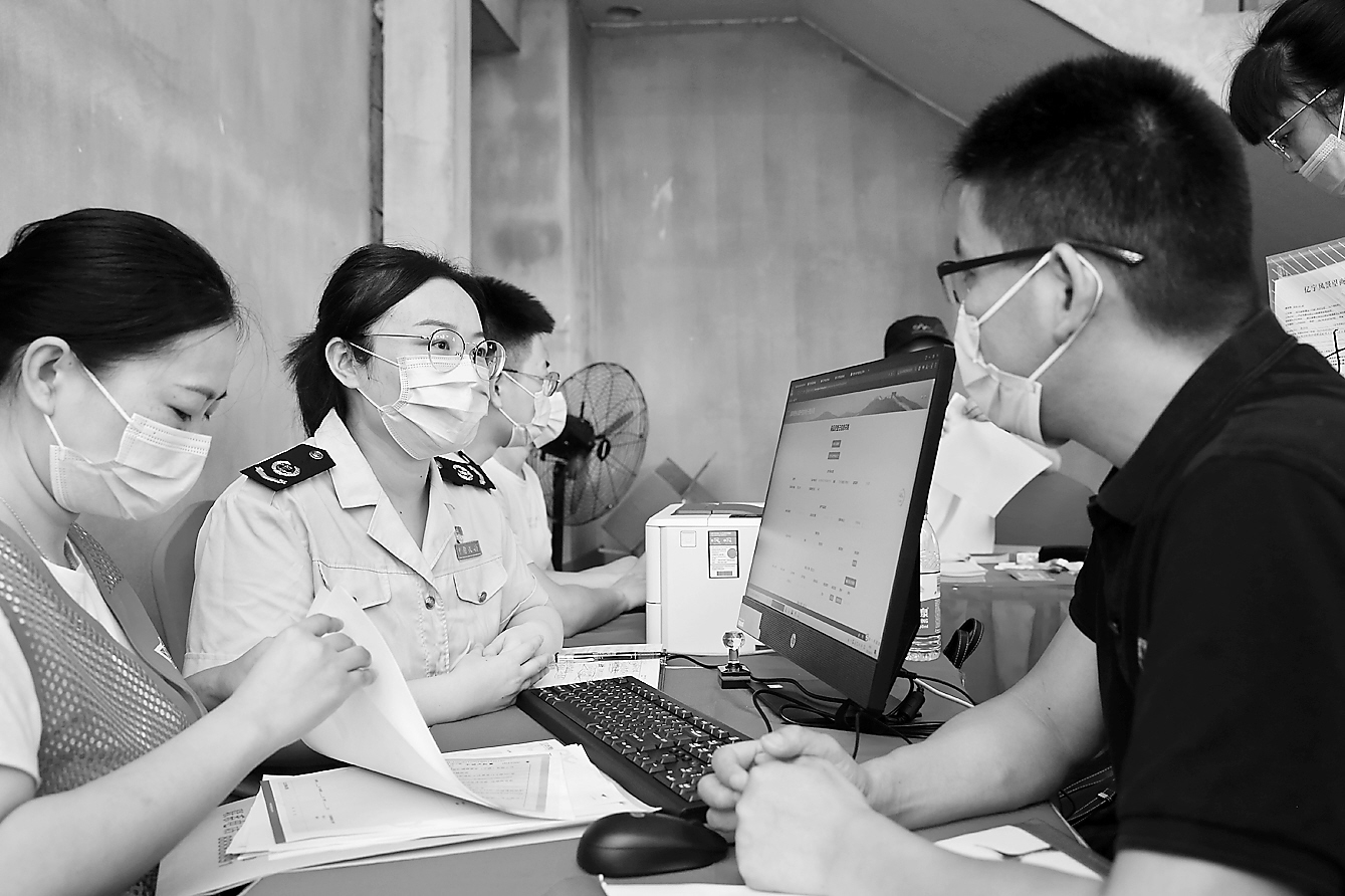 日前,国家税务总局宁波市税务局对房地产开发企业、房产中介等开展分级分类重点宣传辅导,确保纳税人掌握契税法相关规定。图为税务干部在楼盘交付现场,向业主宣传契税法。