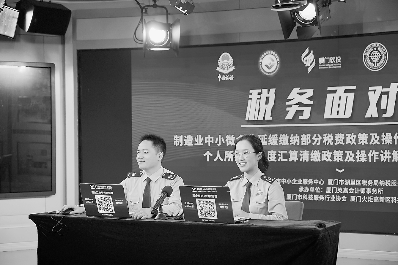 最近,国家税务总局厦门市湖里区税务局组织业务骨干走进厦门市中小企业服务中心,为全市中小企业举办制造业税费缓缴和个税汇算线上直播课。