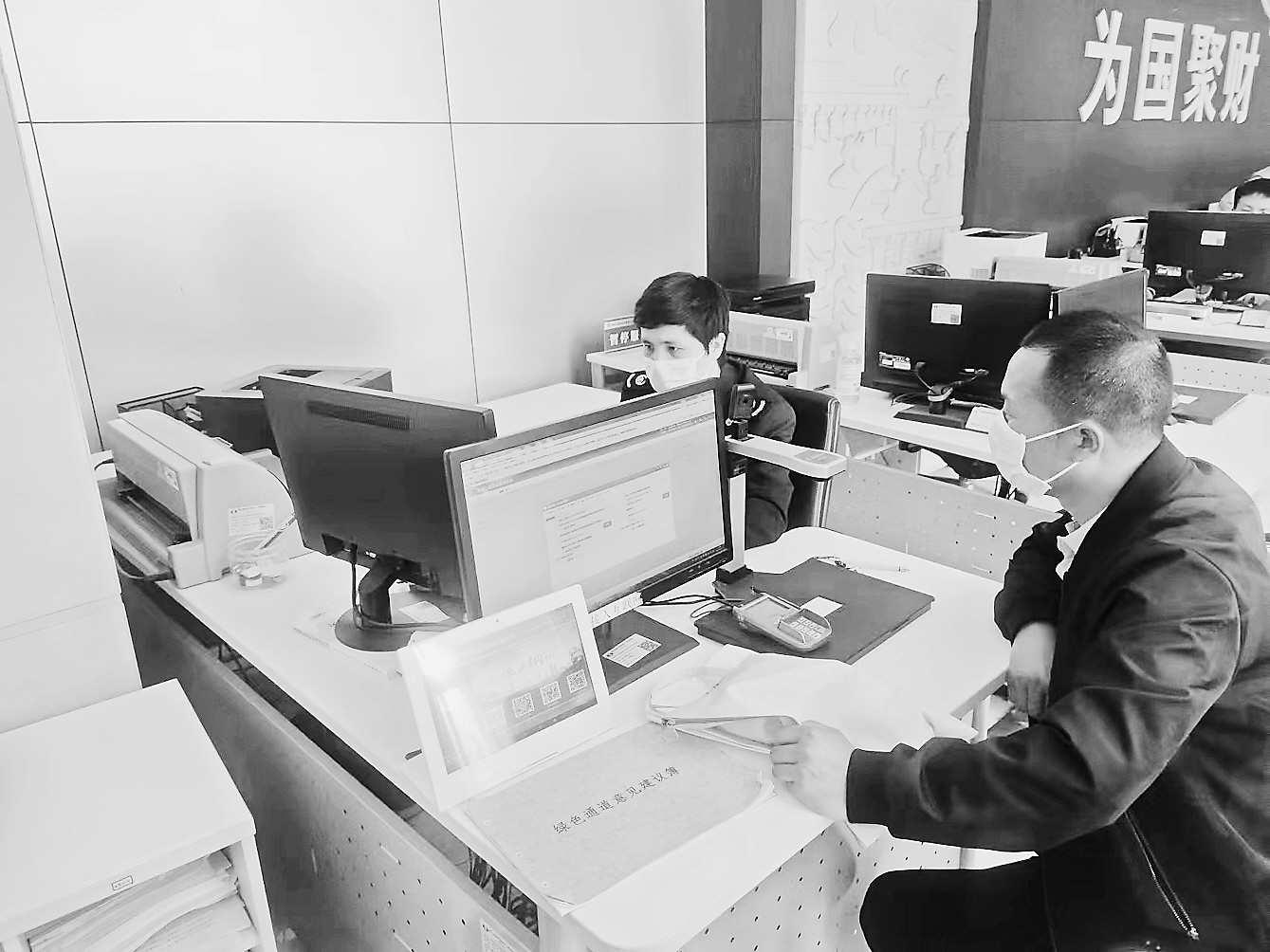 国家税务总局荆州市荆州区税务局为新办个体工商户提供“套餐式”服务,通过线上线下辅导,为其提供更加便捷、高效的纳税服务。图为荆州区新开业的某宾馆负责人在办税服务厅办理业务。