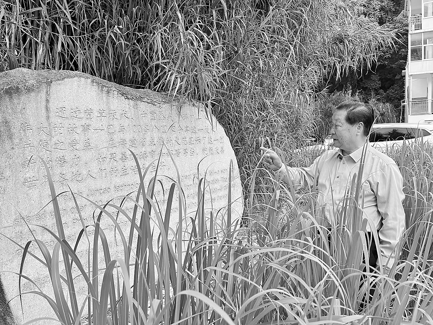 福建农林大学院内的石碑上,刻着在2019年4月联合国菌草技术高级别会议上第73届联合国大会主席对中国菌草技术的高度评价。