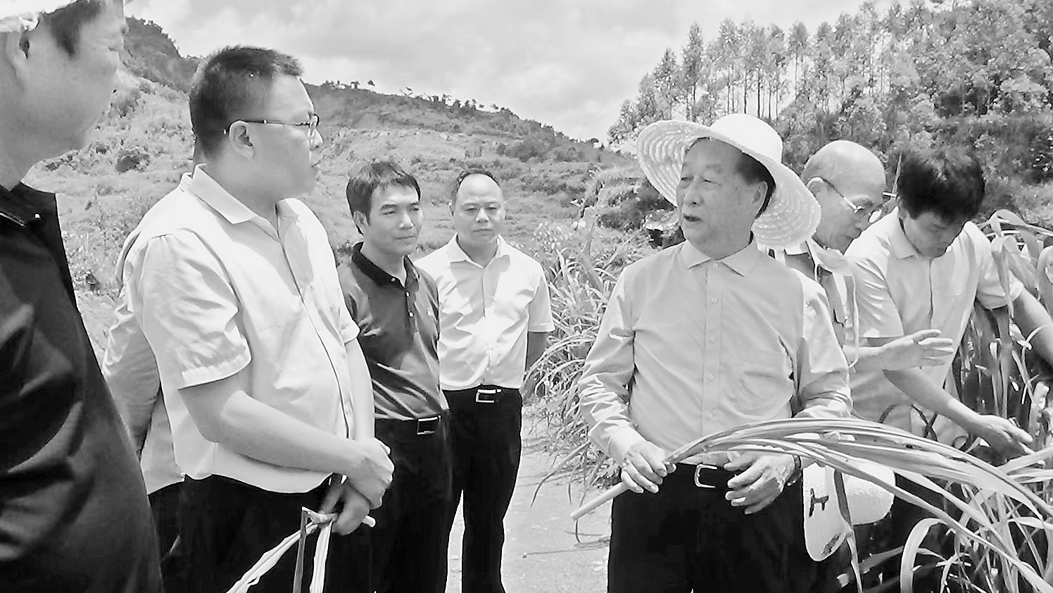 林占熺(右一)在福建泉州指导用菌草技术服务乡村振兴。 图由国家菌草中心提供。