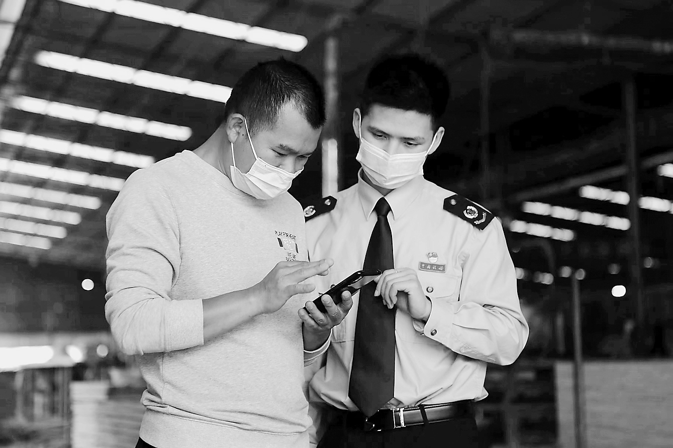 近期,广西税务部门组织干部走访中小微企业,了解企业享受税费优惠政策情况。图为国家税务总局乐业县税务局干部在一家小微企业调研。
