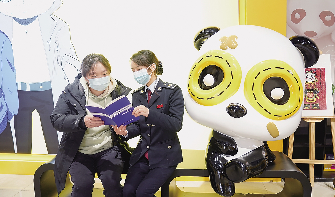 日前,国家税务总局成都市成华区税务局干部走进成都大熊猫繁育基地开展税收宣传。图为该局干部在为基地工作人员讲解个人所得税相关政策。
