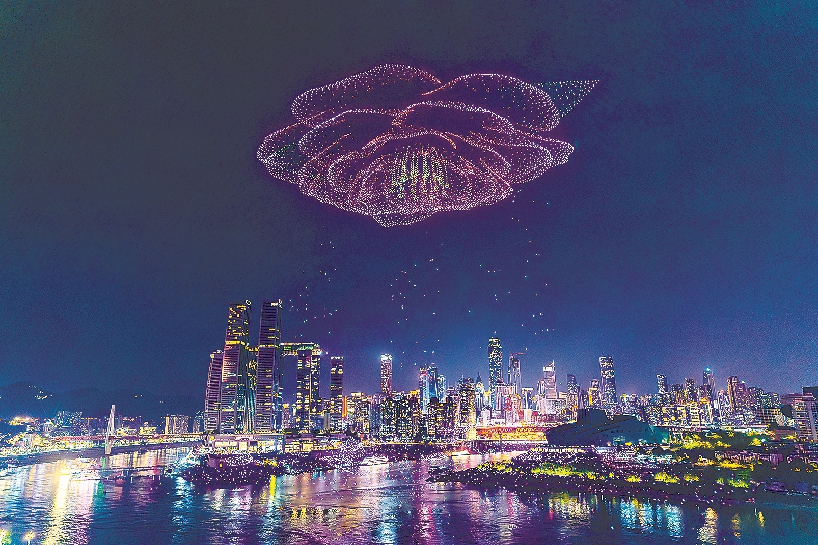 最近,在重庆长江与嘉陵江交汇处的夜空中,一朵由11787架无人机组成的巨型重庆市花山茶花徐徐展开,刷新“最多无人机组成的空中图案”吉尼斯世界纪录。 据悉,自今年4月19日常态化展演无人机灯光秀以来,无人机灯光秀已成为重庆一张闪亮的城市名片,每晚吸引十几万甚至数十万人到现场观看。游客在欣赏视觉盛宴的同时,也激活了城市消费活力。美团旅行数据显示,自6月开始,“重庆无人机表演餐厅”搜索量同比上涨285%。 国家税务总局重庆市税务局聚焦无人机灯光秀相关的重点景区、核心商圈内餐饮、零售等相关经营主体,针对发票用量增长等实际需求,依托网格化服务一对一辅导商户通过电子税务局及时申请提升开票额度,熟练掌握线上开票流程,帮助他们抢抓消费热潮机遇,让“流量”更好转化为“销量”。