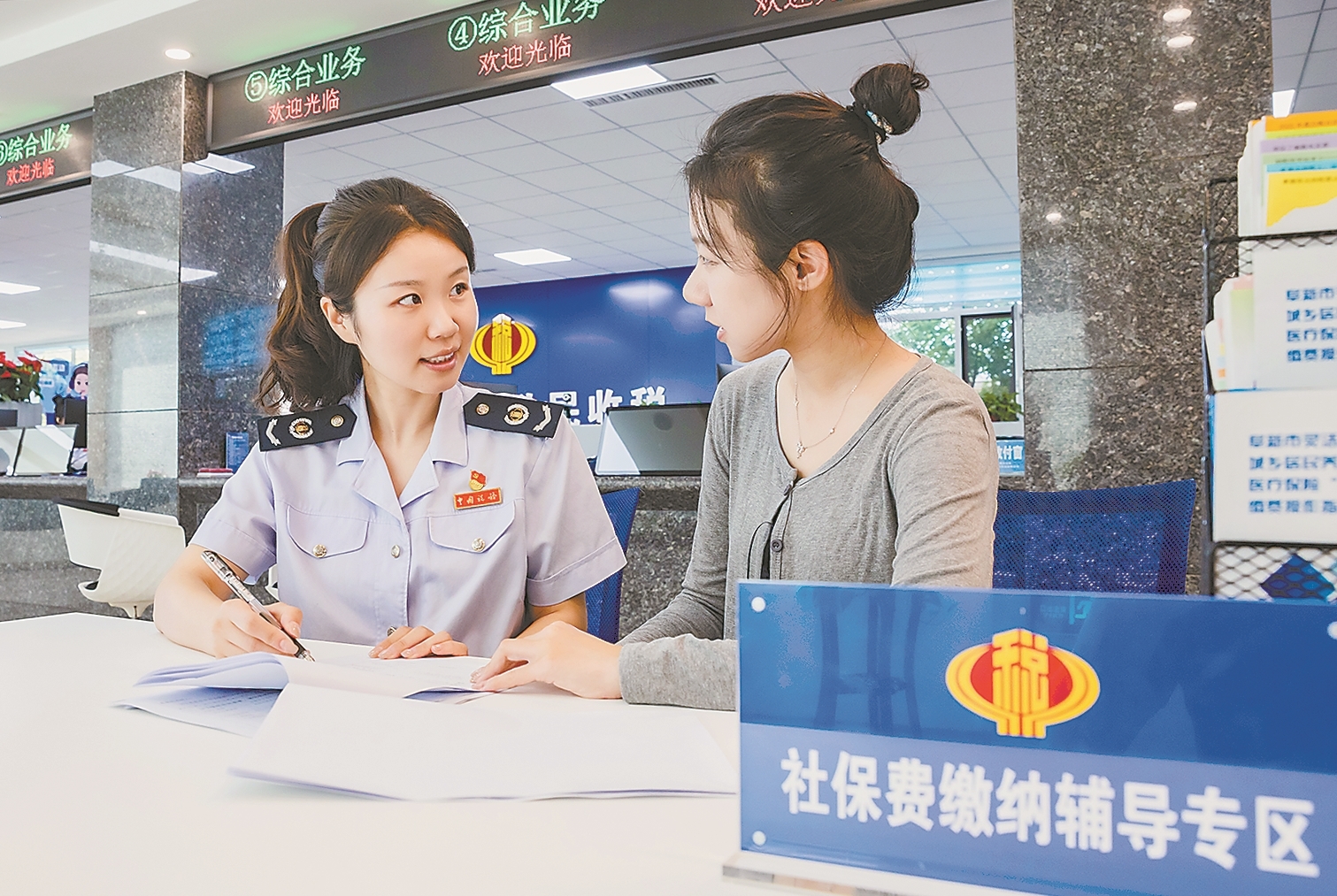 今年以来,辽宁省税务部门加快构建“税费皆重、税费一体、税费协同”工作格局,围绕缴费渠道、缴费流程、缴费方式等内容,加大社保费宣传辅导力度,持续提升城乡居民和灵活就业人员社保参保缴费工作质效,不断提高群众满意度。图为近日国家税务总局阜新蒙古族自治县税务局干部在办税服务厅社保费缴纳辅导专区,为群众讲解灵活就业人员参加企业职工养老保险政策。