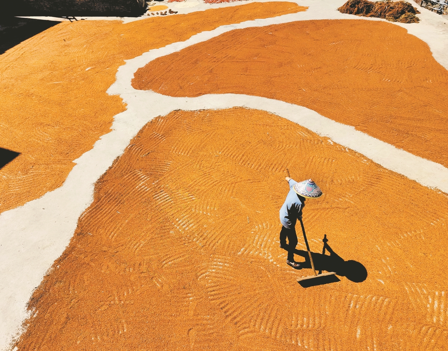 重庆南川近日连续高温,气温接近40摄氏度,当地农民抓紧晒高粱。