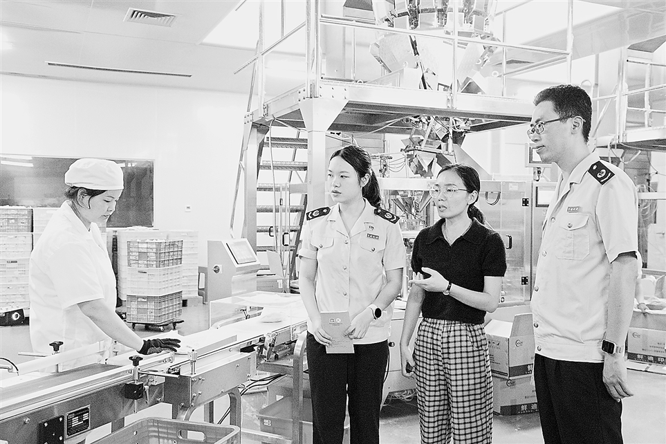 国家税务总局柳城县税务局青年服务队近期开展分行业税收调研,点对点解答企业在新药研发、技术改造等方面的涉税疑难问题,助力企业合规适用税费政策。图为服务队成员近日在一家药企了解原料供应和产品销售情况。