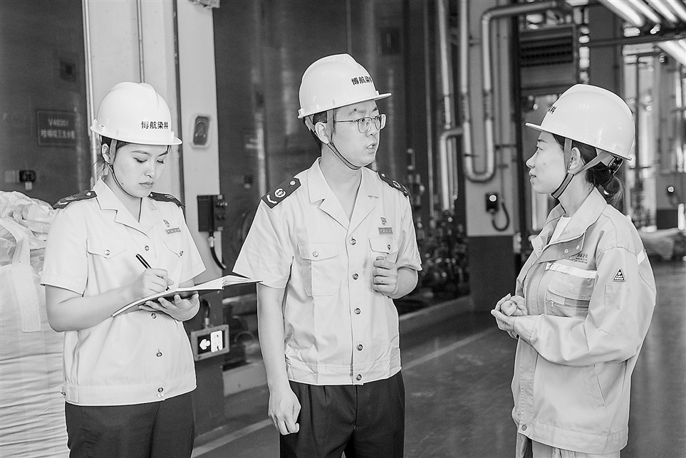 近日,国家税务总局安达市税务局税费服务团队开展高新技术企业走访活动。图为税务干部在博航染料化工有限公司了解企业经营状况和涉税需求,讲解研发费用归集方法。