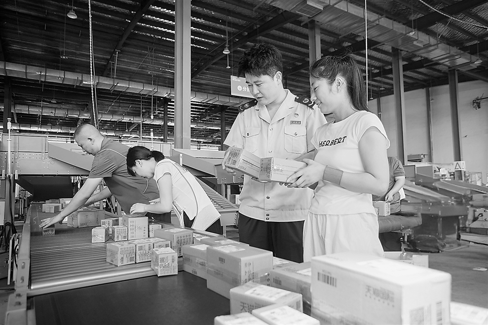 近期,《财政部 税务总局关于明确快递服务等增值税政策的公告》(财政部 税务总局公告2025年第5号)发布后,宁波市税务部门干部走访快递企业,辅导其正确申报缴纳增值税。图为在宁波顺丰速运有限公司慈溪分公司作业现场,工作人员分拣快递。