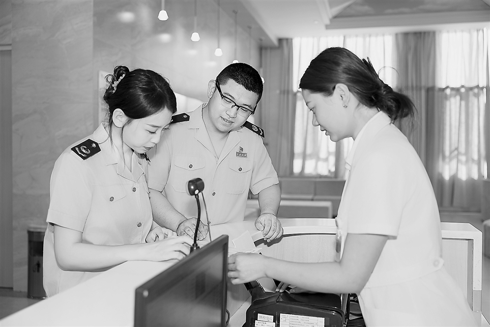 国家税务总局明水县税务局根据民营医疗机构数量日益增多且涉税情况较为复杂的现状,组建行业管理团队,开展税收宣传和业务辅导。图为税务干部在黑龙江明水康盈医院有限公司辅导研发费用加计扣除、固定资产加速折旧等政策。