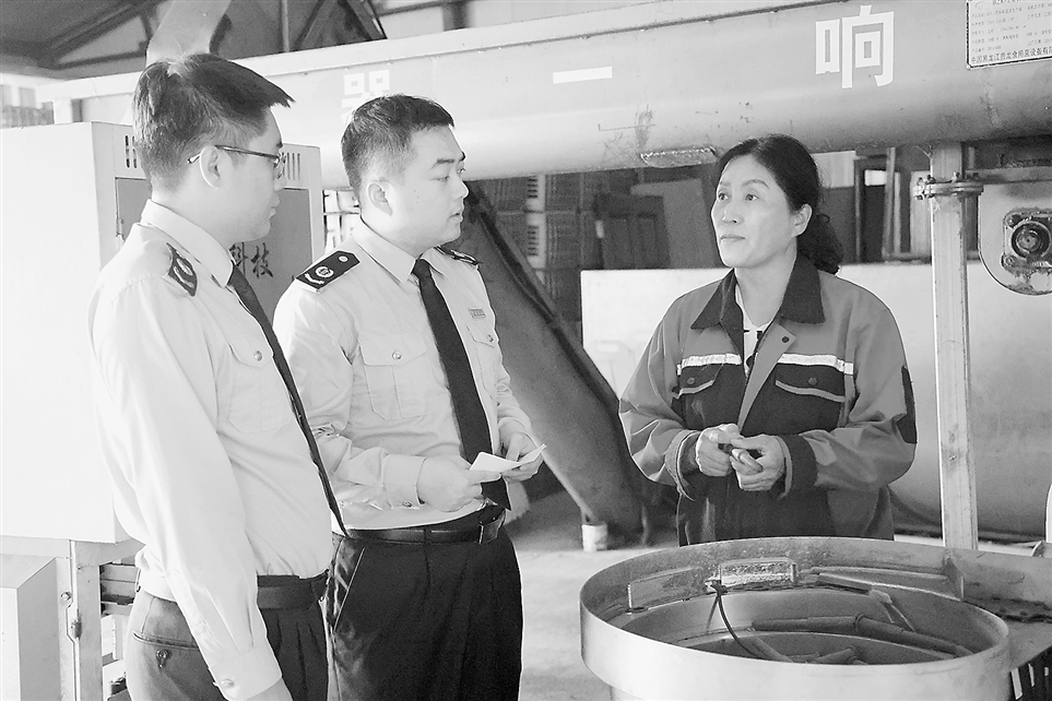 国家税务总局大兴安岭地区新林区税务局强化税源管理,及时掌握企业生产经营数据变化情况,从源头加强税源信息分析研判。图为税务干部近日在一家食用菌企业了解生产经营情况,开展风险提醒。