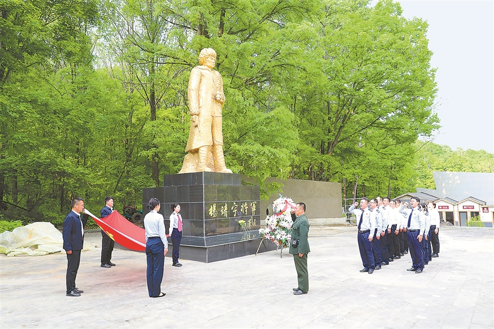 国家税务总局桦甸市税务局干部来到杨靖宇将军密营遗址,缅怀杨靖宇将军及抗联将士,并重温入党誓词。