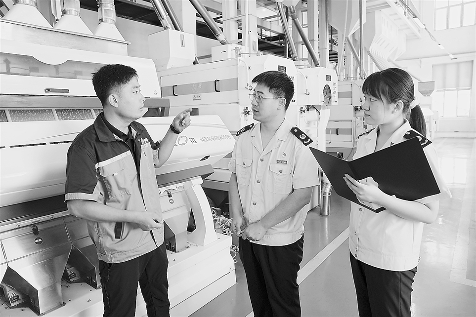 近日,国家税务总局庆安县税务局干部走进庆安绿都源米业有限公司,了解企业生产经营情况,帮助企业解决相关涉税问题。
