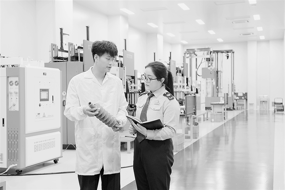 近期,国家税务总局宜兴市税务局组织干部走进辖区重点制造业企业,宣传增值税期末留抵退税政策要点,辅导企业规范办理留抵退税申报。图为税务干部日前在一家电缆制造公司了解生产经营情况,辅导企业合规适用税费政策。