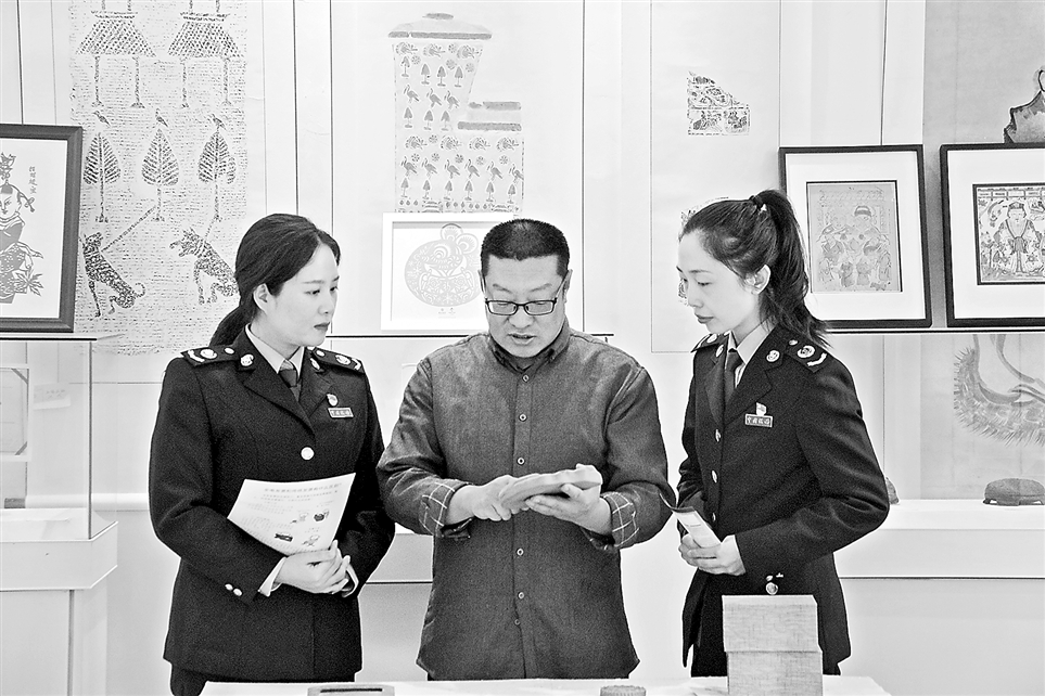近日,国家税务总局三门峡市陕州区税务局干部走访区内“老字号”企业,主动问计问需。图为税务干部在三门峡市陕州区人马寨王玉瑞澄泥砚展示馆,了解其传统技艺传承、生产经营状况,宣传讲解小微企业所得税优惠政策。
