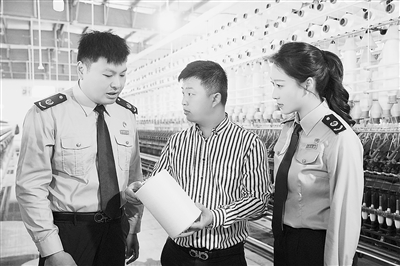 近期,国家税务总局建湖县税务局聚焦制造业企业需求,提供个性化的税费服务,重点宣传设备更新、技术研发等方面税费政策。图为税务干部近日在一家纺织企业开展政策宣传。