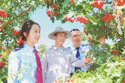 近期,国家税务总局新泰市税务局开展问需走访活动,为农户和农企送上税费政策,讲解合规经营知识,解答涉税咨询。图为税务干部在山楂种植园了解山楂种植销售和企业的税费政策享受情况。