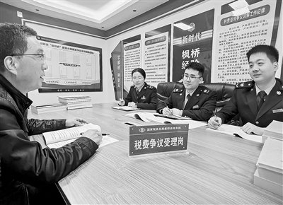 近期,国家税务总局紫阳县税务局通过拓展诉求响应渠道、强化部门联动等方式完善纳税人缴费人权利救济和税费争议解决机制,积极化解税费争议。图为该局调解团队在为一位纳税人解决争议问题。