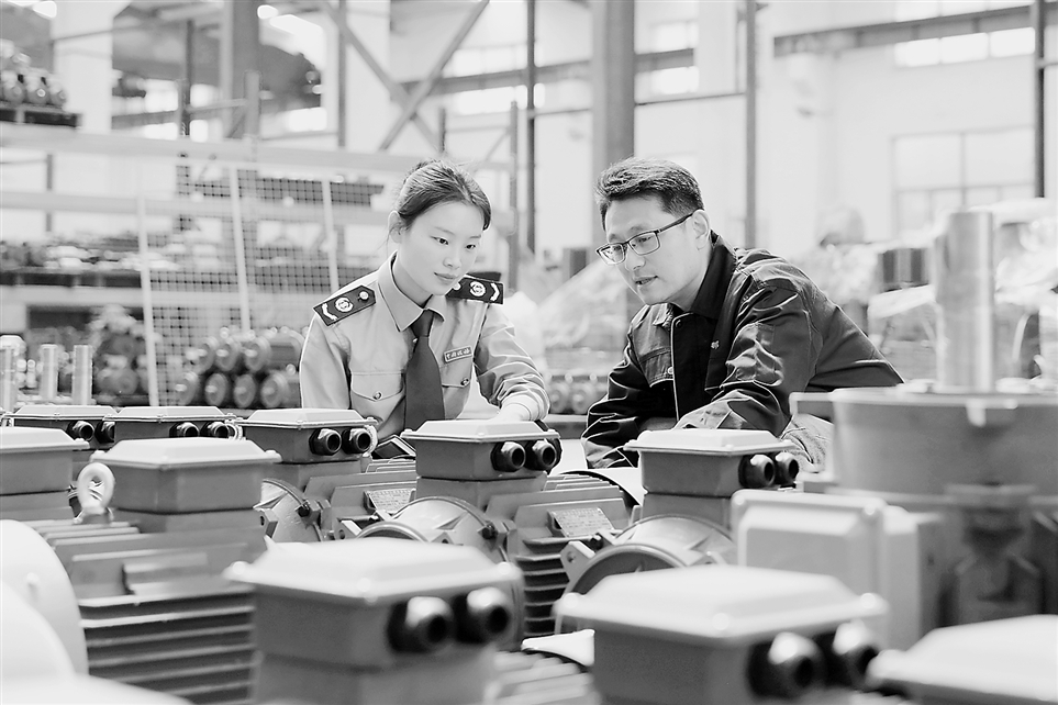 近日,国家税务总局淄博市博山区税务局开展“揭榜挂帅”活动。活动中,电机制造行业核查团队建立“风险识别—综合分析—工具运用—疑点破解”闭环流程四步法,加大对电机制造行业的风险防控力度。图为该局税务干部在一家电机制造企业走访调研。