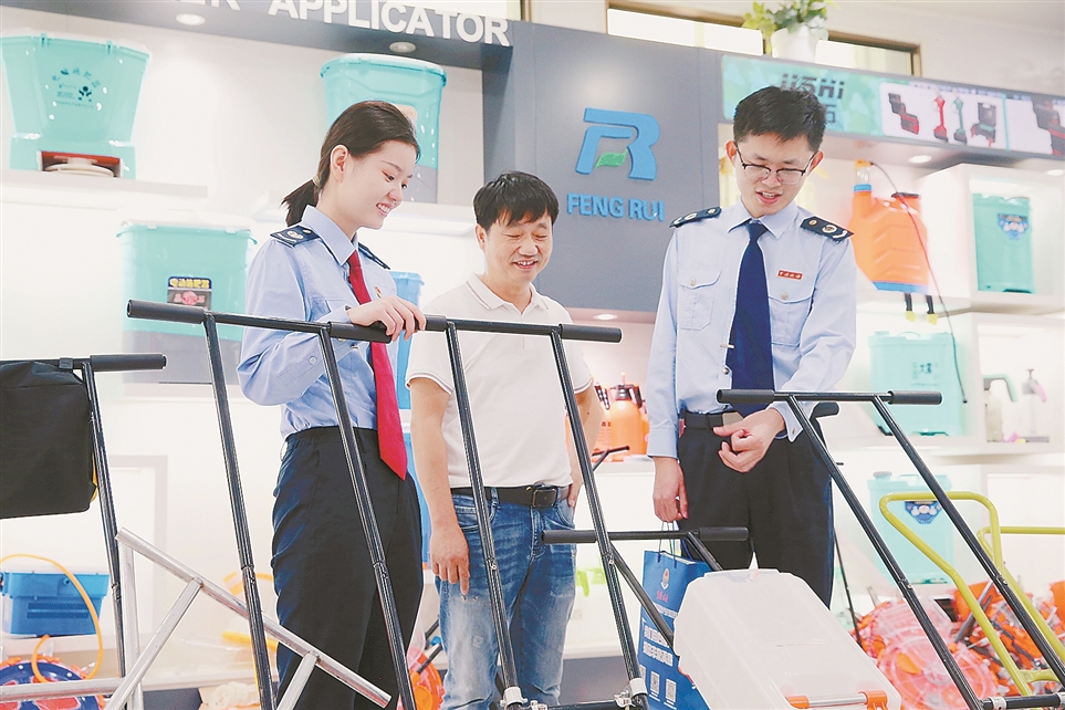近日,国家税务总局临沂高新技术产业开发区税务局干部走进当地农机植保企业,了解企业涉税诉求。图为该局干部在临沂市丰瑞植保电子设备有限公司走访调研。