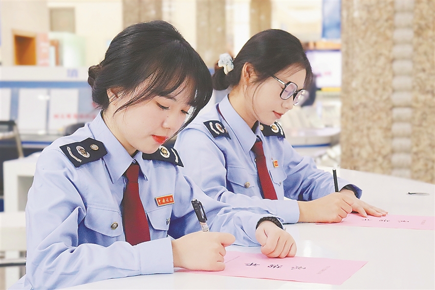 近日,国家税务总局象山县税务局开展“清风扬正气 青年话清廉”主题活动,教育引导青年干部厚植廉洁理念、筑牢思想防线。图为该局新入职干部签订《廉洁自律承诺书》。