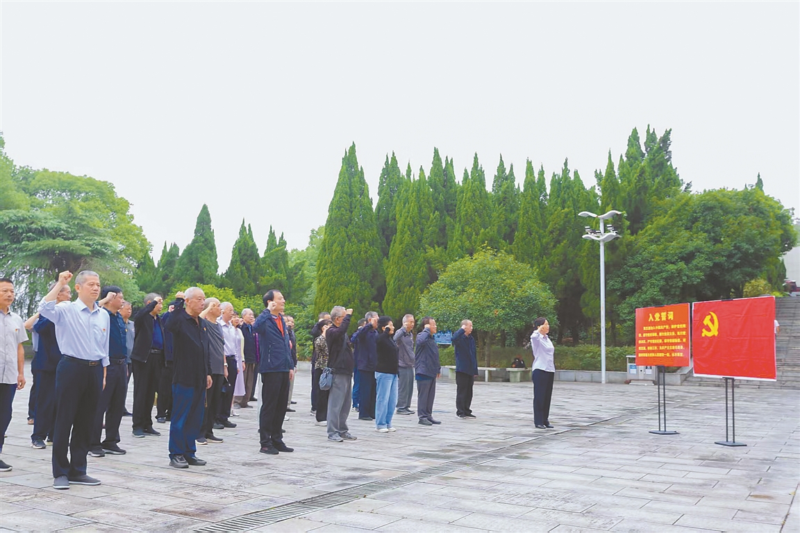 近日,全国离退休干部先进集体——国家税务总局醴陵市税务局离退休干部第二党支部全体党员整齐列队,在醴陵革命烈士纪念碑前,面向党旗宣誓,重温入党誓词。