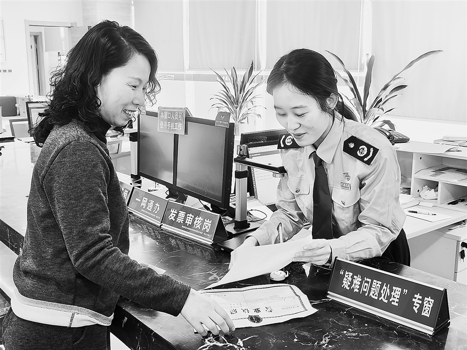 国家税务总局新余市渝水区税务局在办税服务厅设置“疑难问题处理”专窗,集中解决纳税人在业务办理中遇到的复杂情况。图为专窗税务干部日前为一名纳税人提供纳税信用修复辅导。