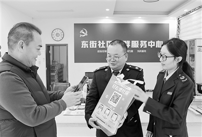近日,国家税务总局宝丰县税务局干部走进社区招聘会现场,针对求职者关注的个人所得税、社保费缴纳等问题开展现场政策答疑活动。图为税务干部正在辅导社区人员体验线上医保缴费流程。