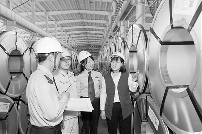 国家税务总局博兴县税务局关注当地优势产业金属板材行业发展,为相关企业提供“一企一策”税费服务,辅导企业依法依规适用税费政策,更好防范税务风险。图为税务干部近日在一家金属新材料企业走访,解答企业涉税疑难。