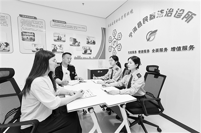 近期,国家税务总局宁海县税务局联合县司法局设立“民商法治诊所”,并组建由税务公职律师、税收业务骨干等人员组成的涉税争议调解团队,为纳税人缴费人解决税费疑难问题,及时化解争议。诊所“开诊”以来已成功化解税费争议23起。图为税务人员正在解答纳税人提出的税费疑难问题。