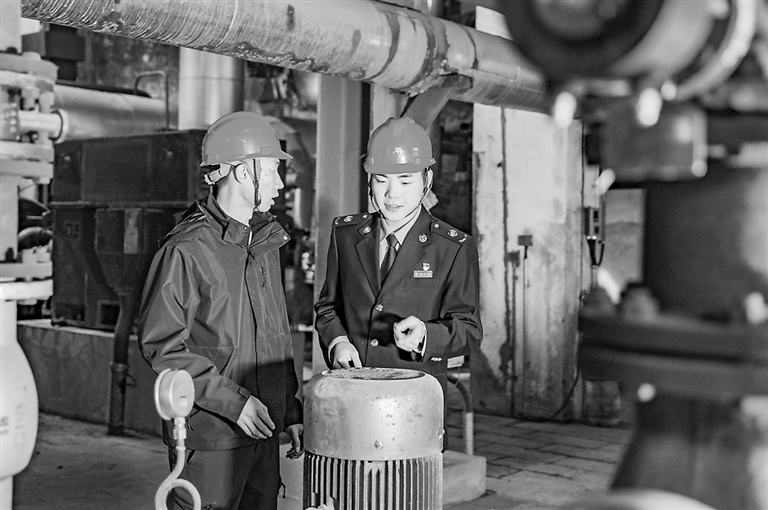 国家税务总局阜新蒙古族自治县税务局在今冬采暖季到来之际,针对供暖企业发票开具等需求,开展业务辅导。图为税务干部在辽宁省阜新盛明热电有限责任公司生产车间了解供暖情况。