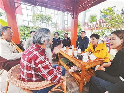 今年6月,在“文化中国行·长江揽胜”系列报道青海段,本报记者田福雁(右二)、张天墨(右三)在青海省玉树藏族自治州采访长江源头文化学者文扎和《格萨尔》史诗说唱艺人才仁索南。