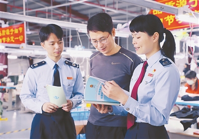 近日,国家税务总局汕尾市税务局“惠企暖企先锋队”成员到服装企业开展政策辅导,提醒企业财务人员健全财务制度,及时申报缴纳税费。