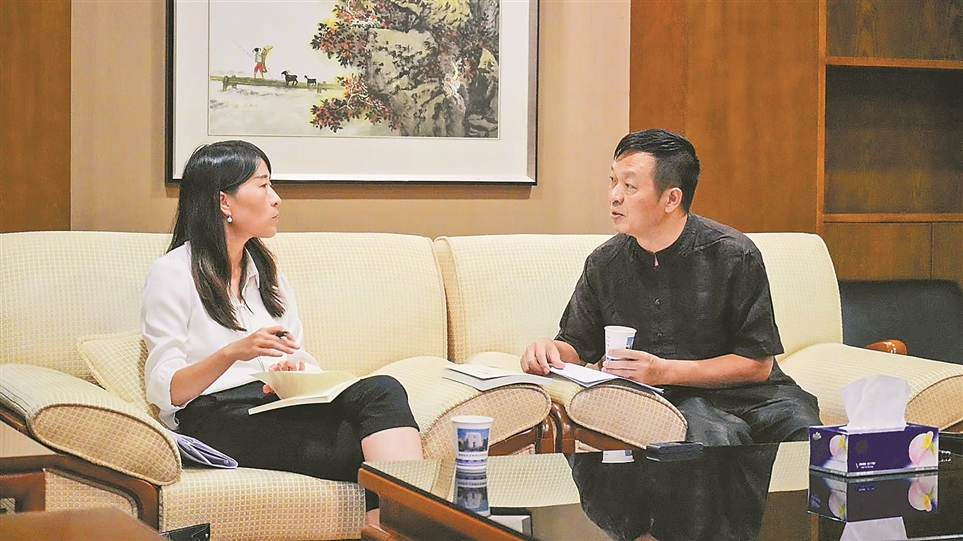 今年8月,在“文化中国行·长江揽胜”系列报道湖北段,本报记者李萍(左)采访国家非遗项目“屈原传说”湖北省级代表性传承人郑承志。