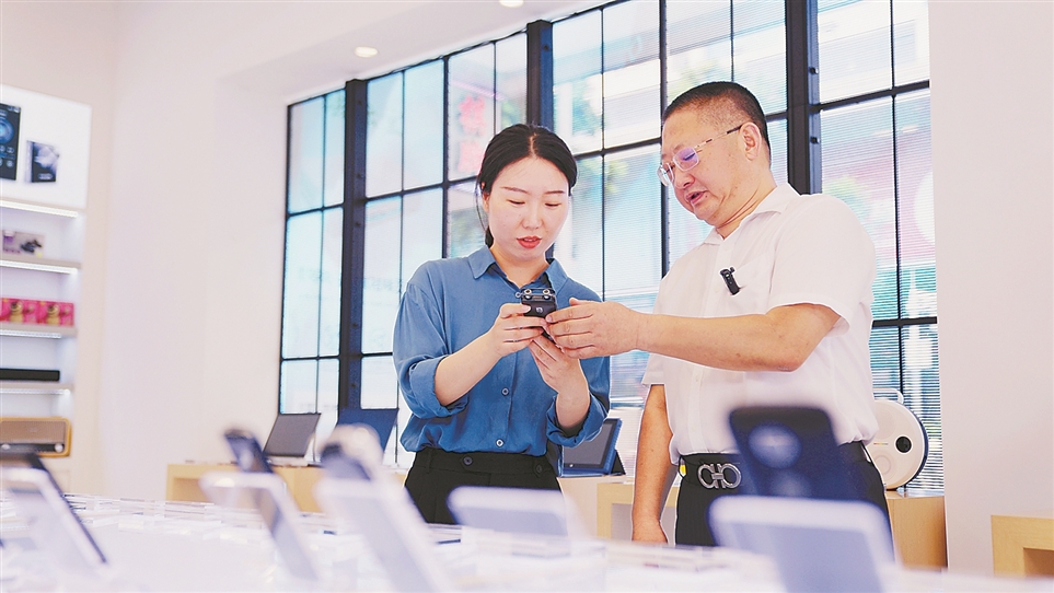 今年8月,在深圳经济特区建立45周年之际,本报记者杨贵苗(左)在深圳市京华电子股份有限公司采访。