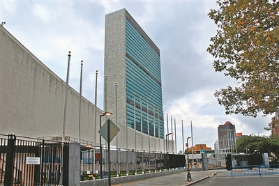 图为位于美国纽约的联合国总部大楼。