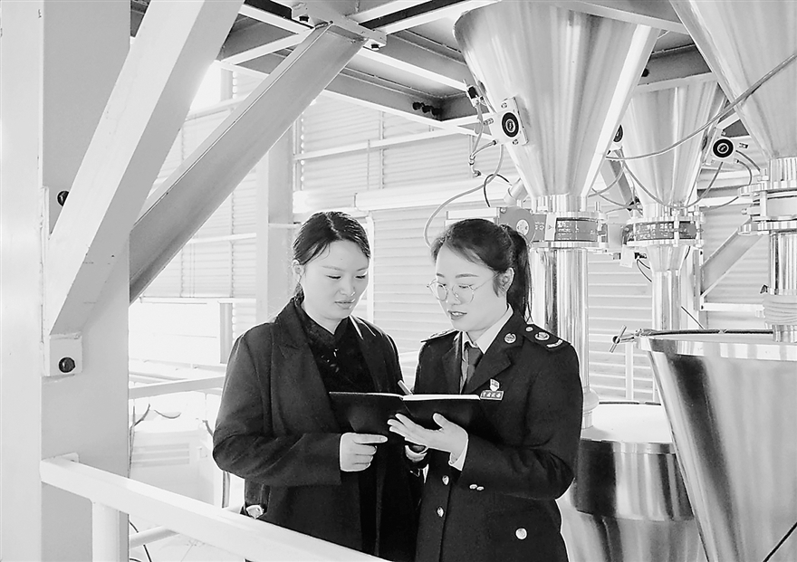 日前,国家税务总局来安县税务局面向专精特新企业开展专题宣传,引导企业准确适用研发费用加计扣除等政策,合规开展经营。图为该局税务干部在安徽鸿旺节能科技有限公司了解企业生产情况和税费政策适用情况。