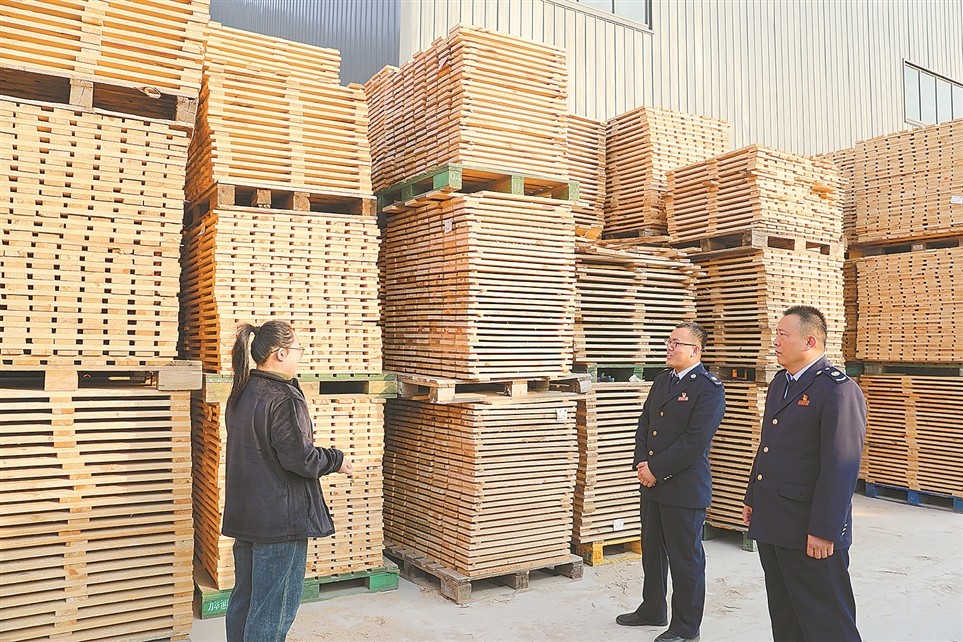 近日,国家税务总局巨野县税务局干部开展实地调研,核查板材加工企业原材料与辅料消耗情况。
