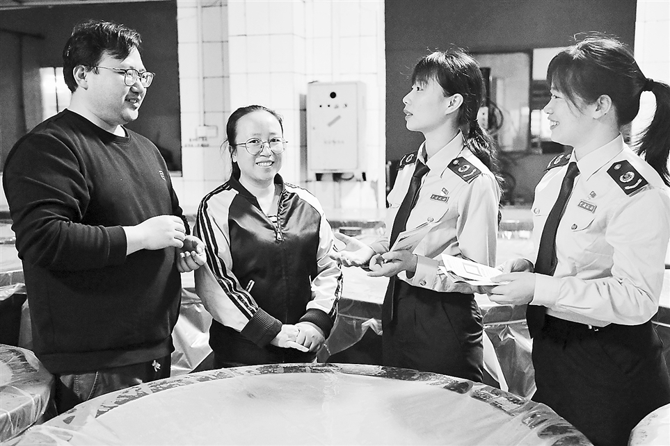近日,国家税务总局全州县税务局干部走进酒类生产企业,摸排企业涉税需求,解读合规经营税费政策,助力酒企稳健发展。
