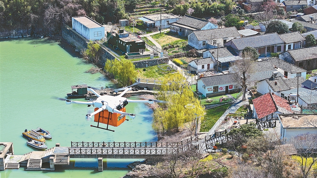 “十五五”规划建议提出,健全一体衔接的流通规则和标准,高标准联通市场设施,降低全社会物流成本。 最新数据显示,今年前10个月,我国快递业务量达1626.8亿件,同比增长16.1%。从“年均百亿件”到“月均百亿件”,我国快递业务在高基数之上保持高增长。 快递业务量快速增长的同时,区域发展也更趋协调。今年前10个月,陕西、宁夏、新疆等地快递量增速超30%,中部和西部地区业务占比分别提升1.1个和0.6个百分点。快递企业与铁路部门创新推出“前置仓+铁路班列”模式,运输时效提升约10%,成本降低近30%。 图为在安徽省合肥市,快递企业使用无人机为农村居民提供快递服务。