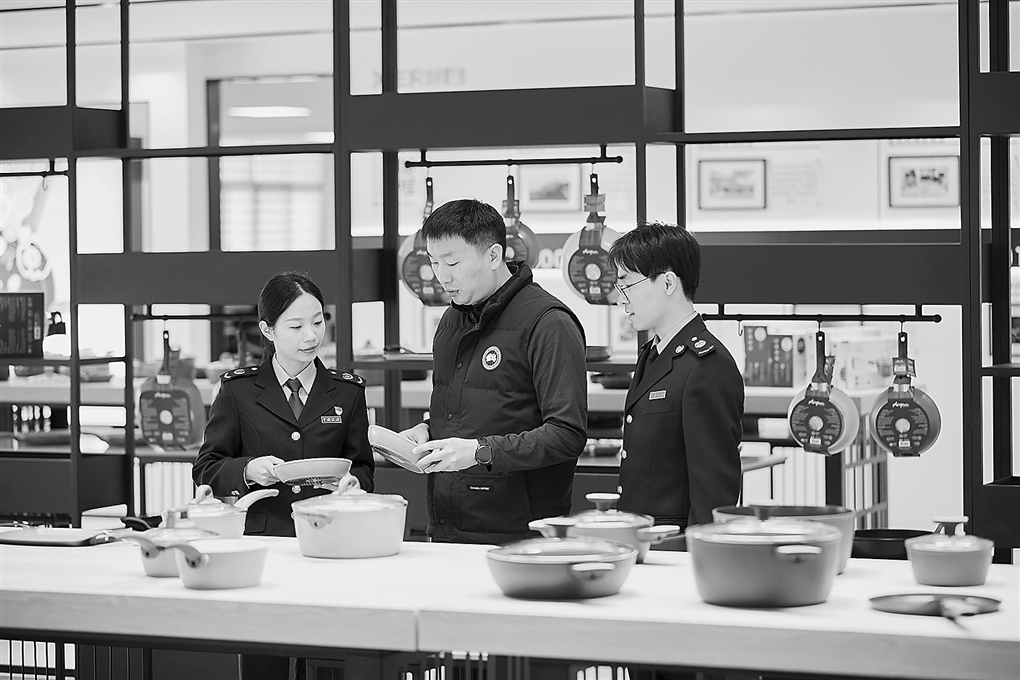 宁波慈溪市作为民营经济重镇,有民营企业6.58万家,贡献了全市90.5%的税收、100余万人近90%的就业岗位。慈溪市税务部门组织干部靠前服务民营企业,提醒企业防范涉税风险、合规经营。图为税务干部日前在一家厨房用品生产企业走访。