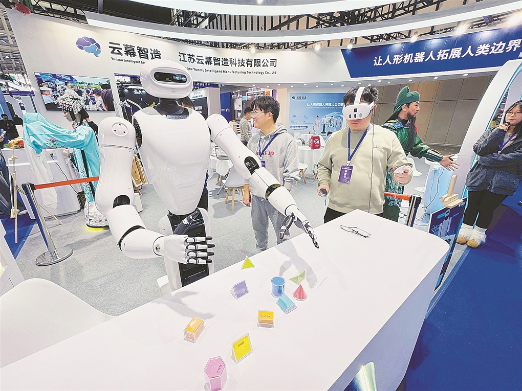 “十五五”规划建议提出,保持制造业合理比重,构建以先进制造业为骨干的现代化产业体系。 国家统计局发布数据显示,今年前10个月,全国规模以上工业企业实现利润总额59502.9亿元,同比增长1.9%。规模以上装备制造业利润同比增长7.8%,拉动全部规模以上工业企业利润增长2.8个百分点;规模以上高技术制造业利润同比增长8.0%,高于全部规模以上工业平均水平6.1个百分点。 图为近日在南京举办的世界智能制造博览会展出的智能机器人。