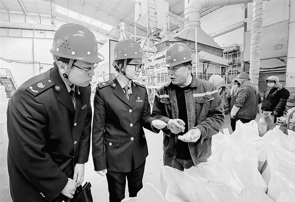 国家税务总局青铜峡市税务局近期开展“政策直通车”活动,组织税务干部走进企业开展政策宣传,引导企业合规适用税费政策。图为税务干部日前在一家种子企业了解生产经营及税费政策落实情况。