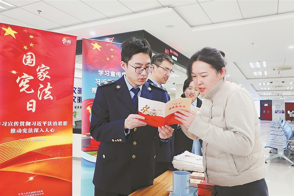 今年12月4日是第十二个国家宪法日,12月1日—7日是第八个“宪法宣传周”。各地税务部门组织开展富有税务特色的宪法主题宣传活动,推动税收法治观念深入人心。左图:国家税务总局宁波市鄞州区税务局联合当地中小学开展“‘宪’在出发、‘税’月同行”主题普法活动,通过情景剧、互动问答等形式宣传宪法精神和税法知识。右图:国家税务总局如东县税务局在办税服务厅开展“与宪同行”宪法集中宣讲活动,组织公职律师为纳税人缴费人讲解宪法和税法知识。 陈丽娜 永轩 张宇 摄