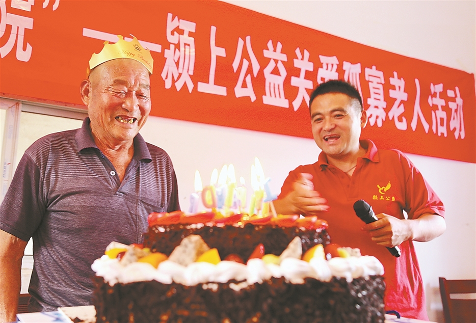 汤锋(右)组织开展关爱孤寡老人活动。