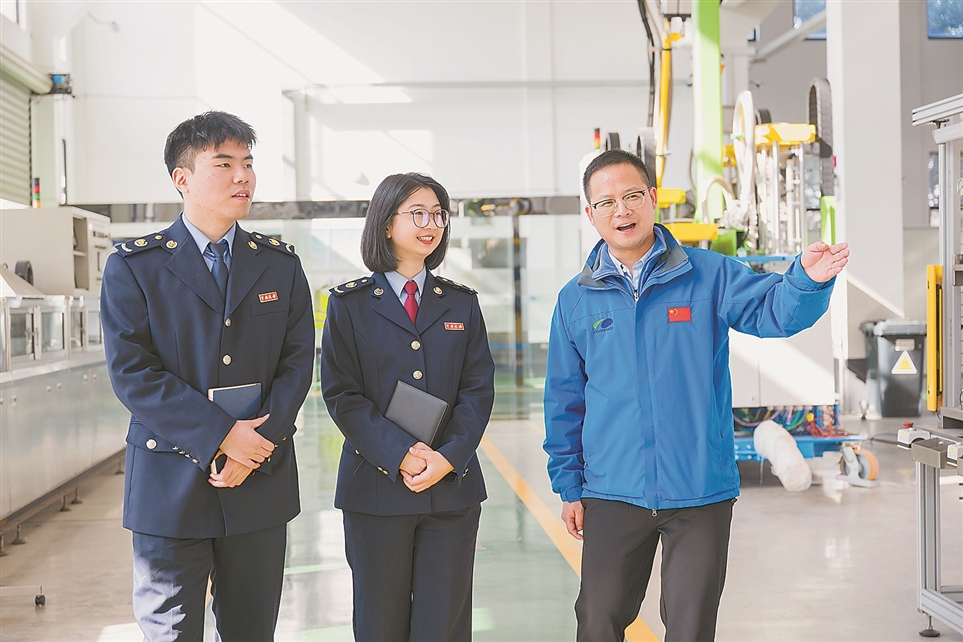 近日,国家税务总局宁海县税务局干部走进辖区企业开展调研,围绕财税合规管理和涉税风险防范开展辅导。图为该局干部在考比锐特智能科技有限公司了解生产经营情况。