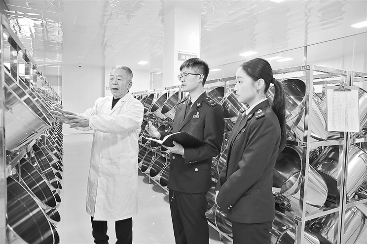 国家税务总局灵川县税务局聚焦辖区中药特色产业经营实际,通过税企微信群、上门走访等方式,辅导企业正确理解政策适用口径。图为税务干部近日在一家医药企业了解企业生产研发情况。