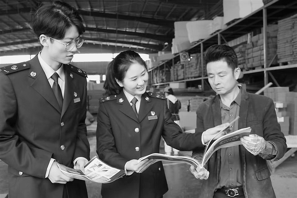 国家税务总局睢宁县税务局聚焦制造业“业务链条长、涉税环节多”的特点,建立“一企一档”服务台账。图为最近税务干部到企业开展合规辅导。